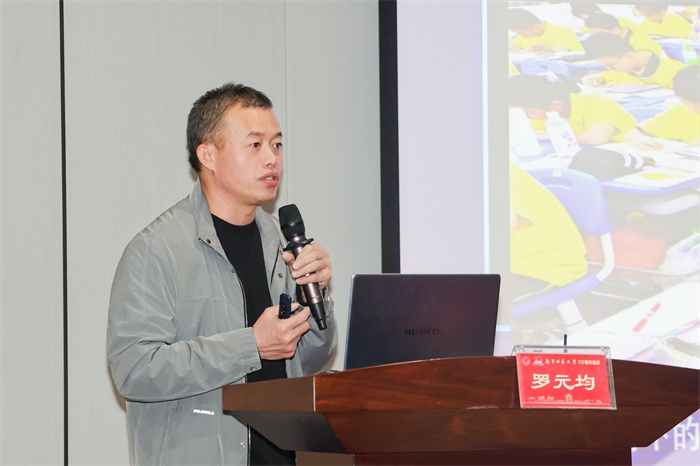 ▲柳州市壶西实验完美网页版教育集团总校长罗元均作题为《“双减”背景下的技术赋能--信息技术支持的课堂变革》的主旨报告