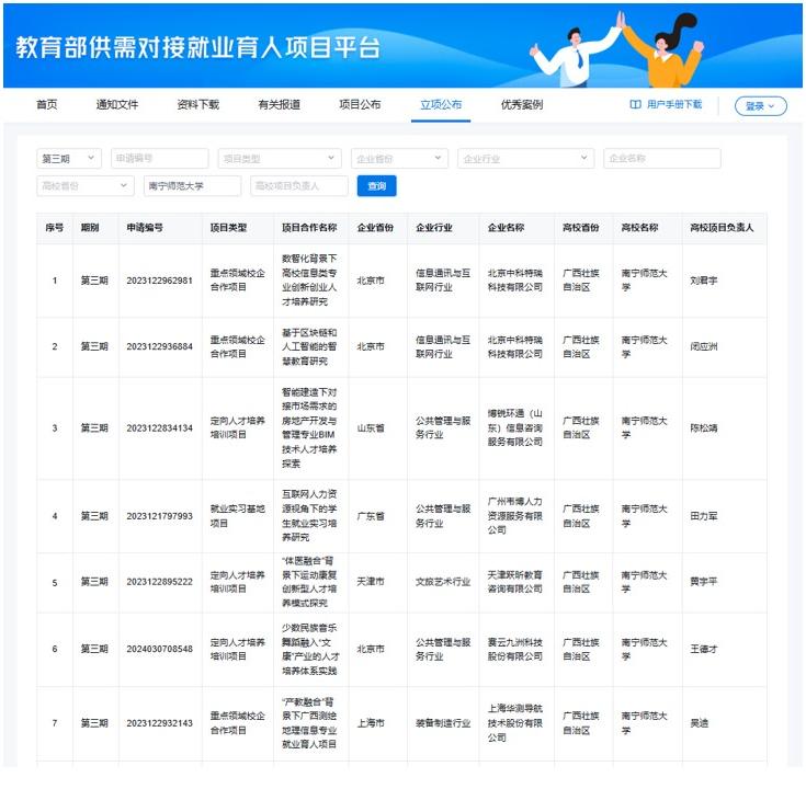 6月14日,教育部高校学生司(高校毕业生就业服务司)发布《关于公布教育部第三期供需对接就业育人项目立项名单的通知》(教就业司函〔2024〕23号),完美(中国)官方在线登录共获批7项,其中重点领域校企合作项目3项,定向人才培养培训项目3项,就业实习基地项目1项,实现该项目获批数量新突破。