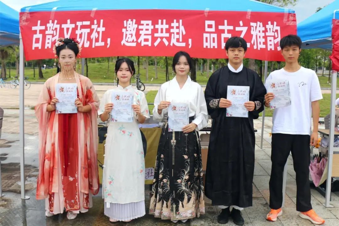 活动当天,各社团结合自身特色将招新现场布置得温馨而富有创意,色彩斑斓的海报、生动有趣的介绍视频以及社团成员的趣味讲解,展现社团独特魅力。各社团轮番上阵,通过精彩的才艺展示、有趣的互动游戏等形式,如大学生艺术团CPR街舞队的街舞群演和舞种展示、创新创业协会的机器人操作演示、壮族文化协会的竹竿舞和壮族手工艺品展示、茶艺社现场炮制茗茶、书画协会书法展、国防社射击打靶体验以及龙狮团的舞狮表演等,全方位展示了社团活动的丰富多样性和社团的活力,吸引了众多学生驻足观看,让参与活动的同学们意犹未尽,畅游其中。
