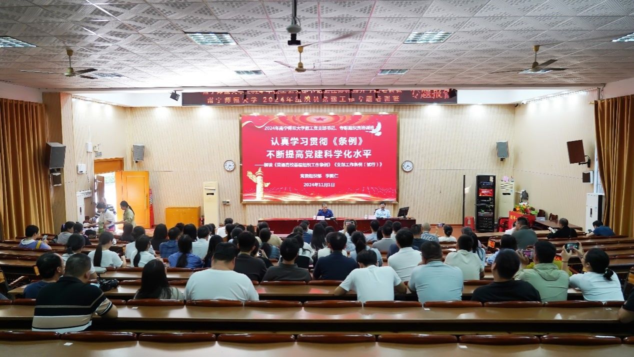 11月1日下午,完美网页版举办2024年教工党支部书记、专职组织员培训班第二场专题报告会,校党委组织部部长李图仁作了题为“认真学习贯彻《条例》 不断提高党建科学化水平——解读《普通高校基层党组织工作条例》《中国共产党支部工作条例(试行)》”的专题报告。校党委组织部副部长吴少进主持报告会。