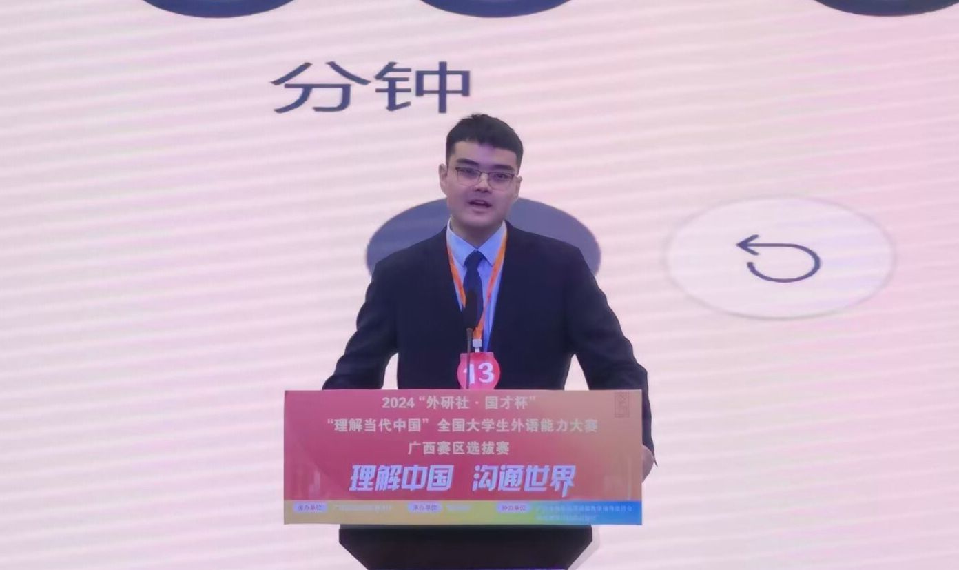 10月25日至27日,由自治区教育厅主办,广西本科高校英语类教学指导委员会、外语教学与研究出版社协办的2024年“外研社·国才杯”“理解当代中国”全国大学生外语能力大赛广西赛区选拔赛英语组演讲和口译竞赛在贺州学院举行。本次广西赛区共有来自全区41所高校的研究生和本科生共200余人参加,完美(中国)官方在线登录共派出8位同学参赛。在演讲竞赛中,2022级英语专业本科生吴浩宇获金奖,2024级研究生江雨微获银奖,研究生孙雯和本科生吴雨晴获铜奖;在口译竞赛中,2023级本科生李姿乐获铜奖。