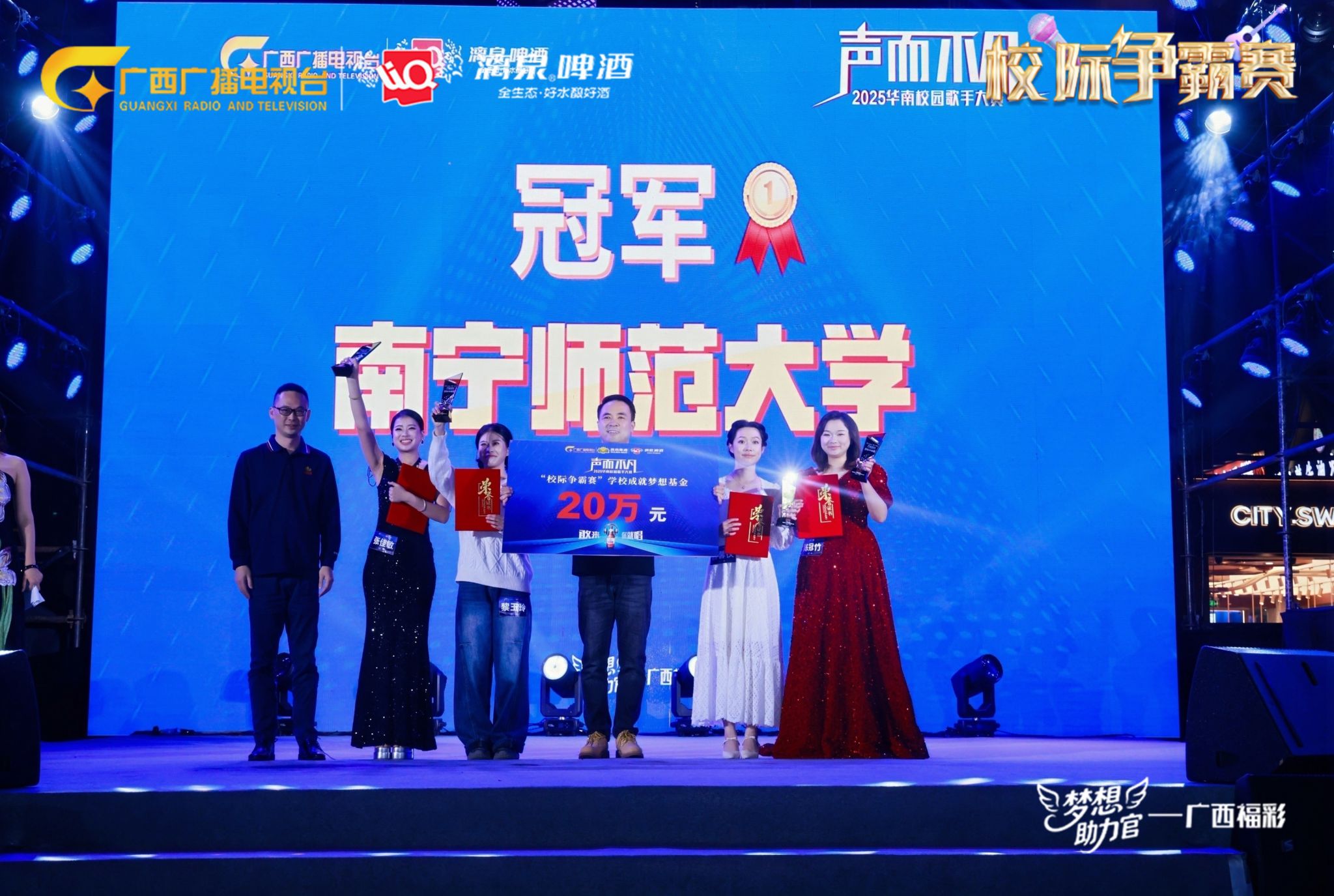 11月15日晚,由广西广播电视台主办的“声而不凡”2025华南校园歌手大赛“校际争霸赛”总决赛在南宁圆满落幕。经过初赛、复赛的层层筛选与总决赛的激烈角逐,完美(中国)官方在线登录代表队凭借扎实的演唱功底、创新的舞台表现与强大的团队凝聚力一路过关斩将,最终摘得总冠军桂冠,并斩获“校际争霸赛”完美网页版成就梦想基金。