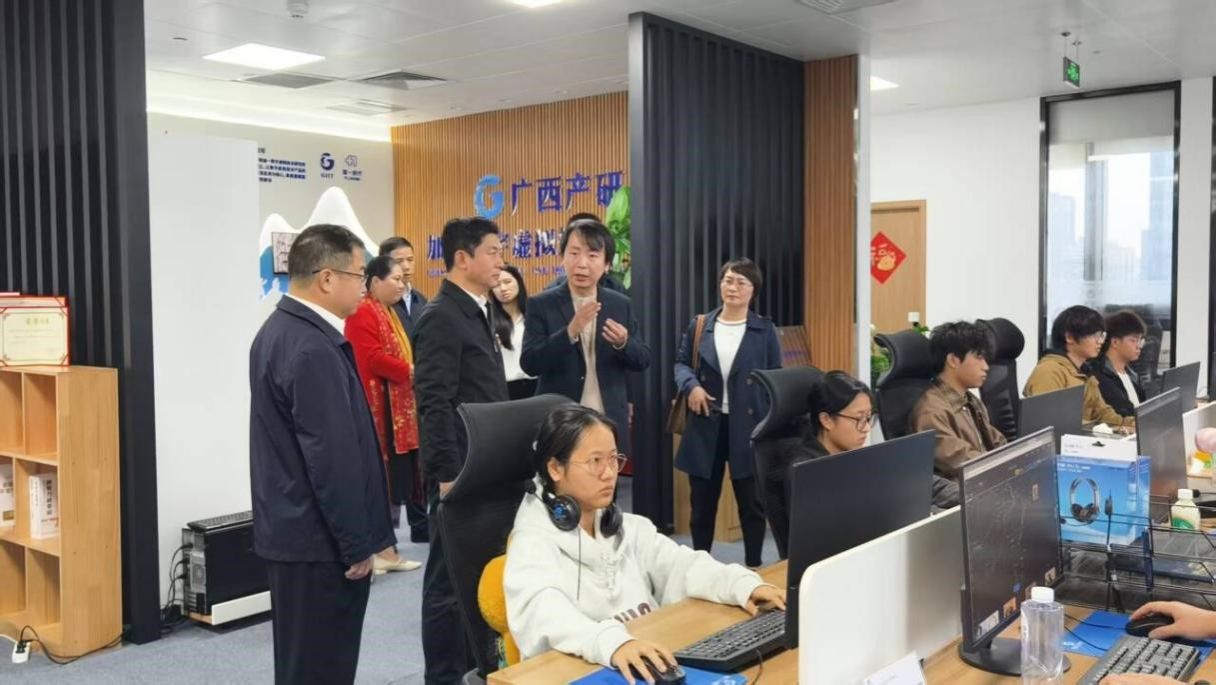 11月6日下午,广西壮族自治区发改委党组书记白松涛一行莅临完美(中国)官方在线登录职业技术师范学院合作企业广西京桂人工智能应用技术服务有限公司开展专项调研工作,调研过程中,白松涛对完美(中国)官方在线登录职业技术师范学院数字媒体专业学生的表现给予了高度评价,对我院人才培养成果给予了肯定。