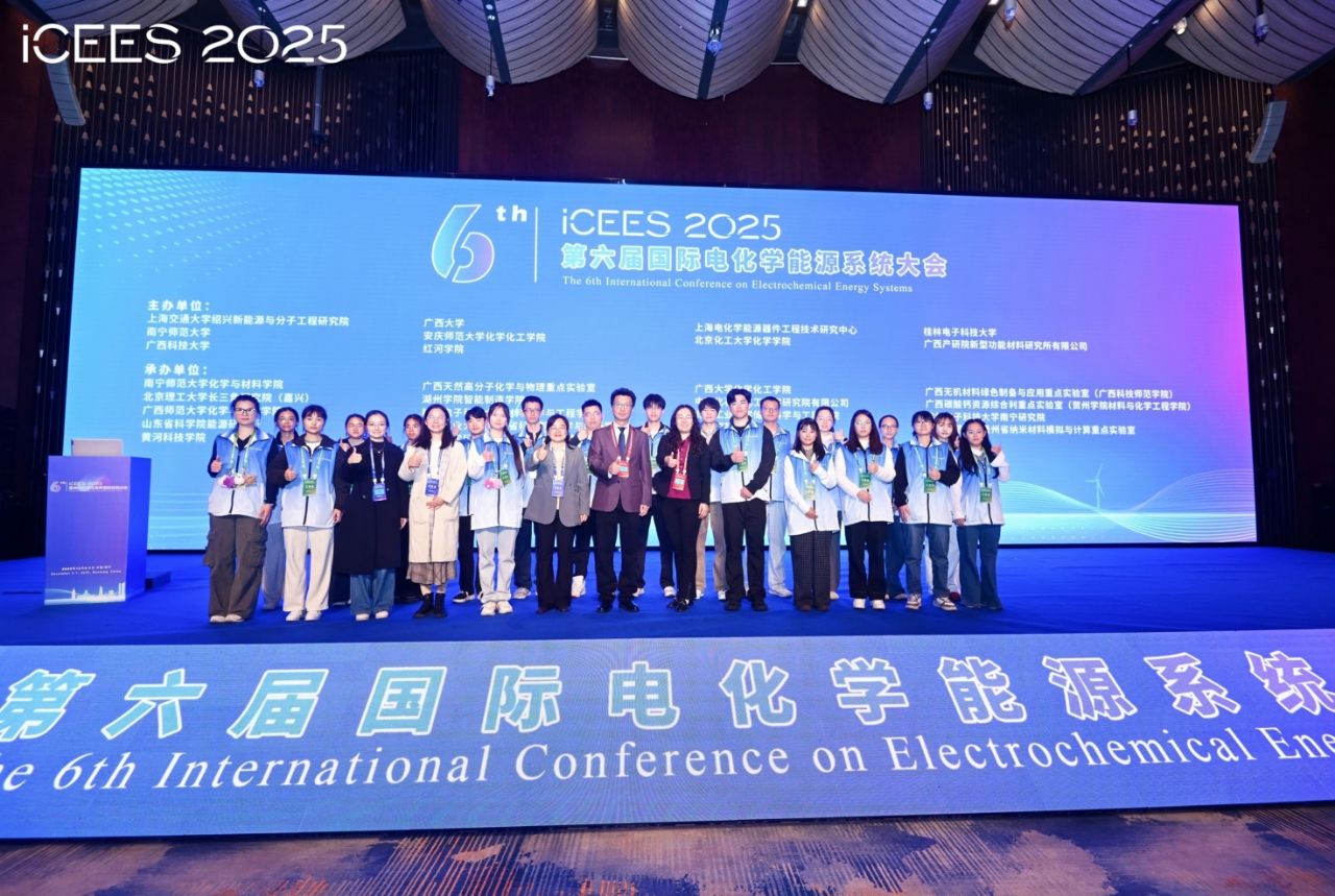 12月5日至7日,第六届国际电化学能源系统大会(ICEES2025)在南宁顺利召开。本次会议由上海交通大学绍兴新能源与分子工程研究院、完美网页版等单位联合主办,完美(中国)官方在线登录化学与材料学院、广西天然高分子化学与物理重点实验室等机构共同承办。大会邀请了赵天寿、陈国华、林文锋、骆静利四位院士在内的近30名知名学者作报告。完美(中国)官方在线登录校长隆广庆出席大会并致辞。