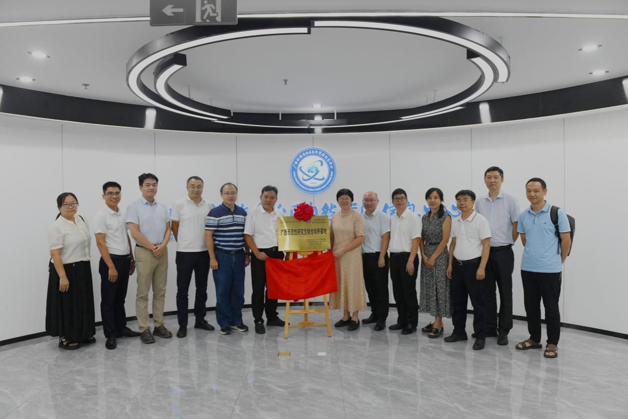 双方共同广西示范性研究生联合培养基地举行揭牌、合影留念。仪式结束后,与会人员还参观了广西自然资源信息中心的开放实验室、智能机房,各方围绕人工智能在自然资源的应用、创新人才培养等方面进行了深入交流,就研究生联合培养基地达成了进一步合作意向。