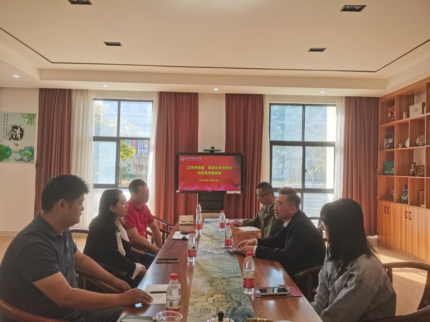 11月21日,旅游与文化学院与江宇梦想城校企合作座谈会在武鸣校区地信楼104室举行。出席本次座谈会的有学院党委书记贾坷、院长段文军、博士郭亮、学院团委书记莫秋桂以及江宇梦想城风景区总经理李达理等企业代表。本次座谈会旨在深化校企合作,促进双方在人才培养、实践教学、科研等方面的交流与合作,共同推动旅游产业的发展。