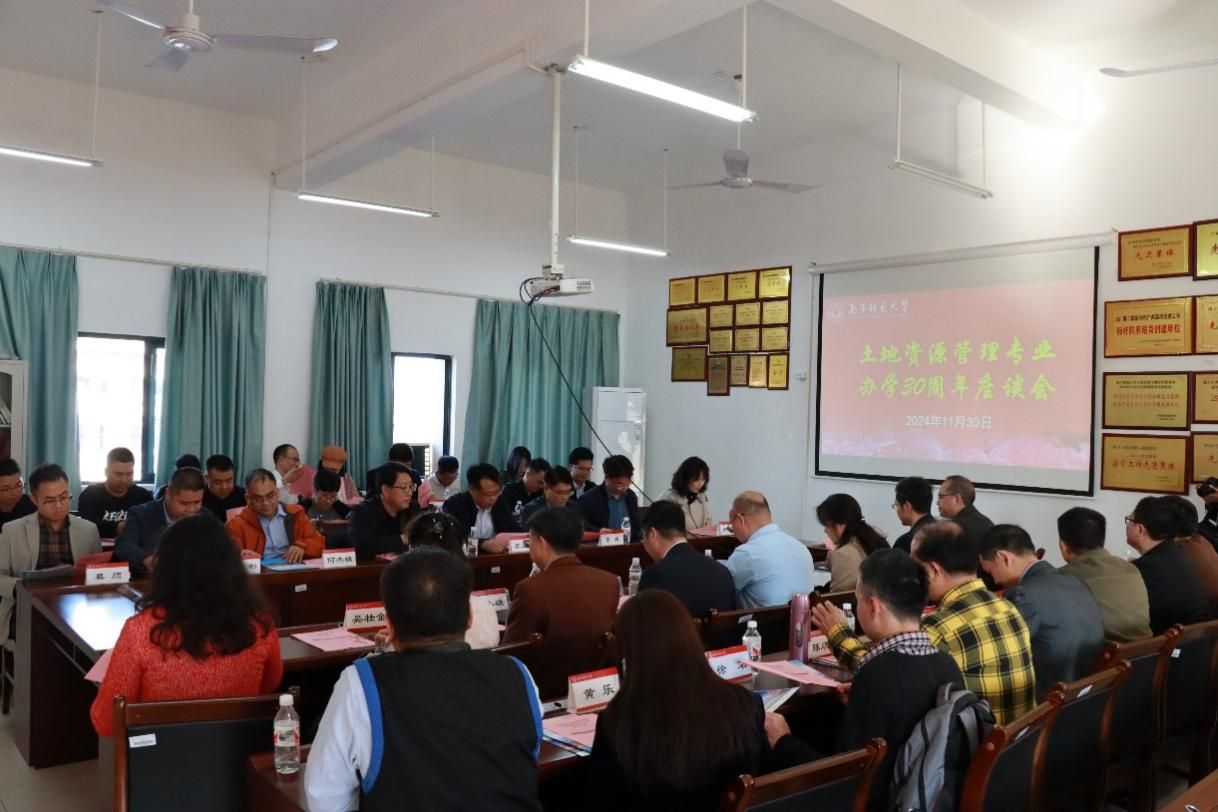 30年栉风沐雨,30年砥砺前行。近日,完美网页版自然资源与测绘学院土地资源管理专业办学30周年活动在武鸣校区隆重举行。自治区人大环境与资源保护委员会副主任委员左旭阳,自治区自然资源厅办公室主任苏正国,自然资源厅执法局副局长何杰模,广西国土测绘院副院长杨旺彬,贵港市自然资源局总工程师李庆,广西英华投资有限公司董事长莫烦,广西大源农业科技有限责任公司董事长陈锦培等20多名政府部门和企业校友代表,学院领导、各系负责人、教师代表参加会议。会议由学院院长陆汝成主持。