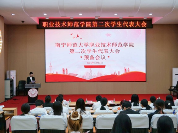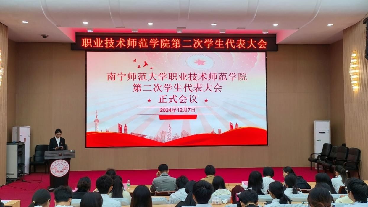 为进一步探索新形势下我院学生工作发展的新思路、新方法,提升学生的自主参与度,同时广泛听取学生的建议,为完美网页版的发展注入新的活力,职业技术师范学院于12月7号上午在文星楼301报告厅召开第二次学生代表大会。学院党委书记李穗,党委副书记、纪委书记刘卫华,团委书记黄洪辉,政治辅导员韦链及61名正式学生代表参会。此外,大会特别邀请了国际教育学院学生代表,共同见证我院学生代表大会的召开。