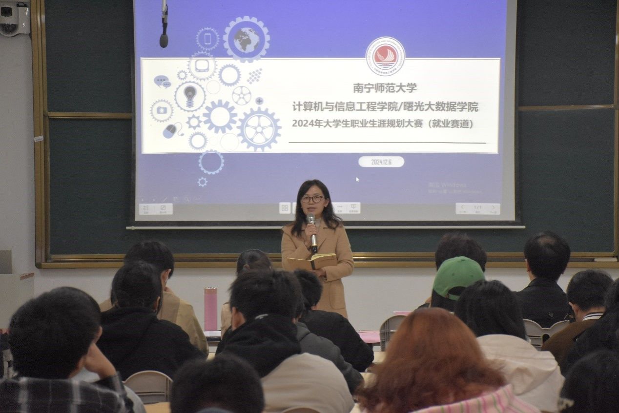 12月6日,计算机与信息工程学院/曙光大数据学院,在武鸣校区一号教学楼118、119教室举办了以“引领未来,职享成长”为主题的2024年大学生职业生涯规划大赛院赛决赛。学院党委韦柳温副书记、覃开贤老师、刘芝老师、戴智鹏老师、林雪老师和许艺静老师等担任评委,200余名师生代表到现场观摩。