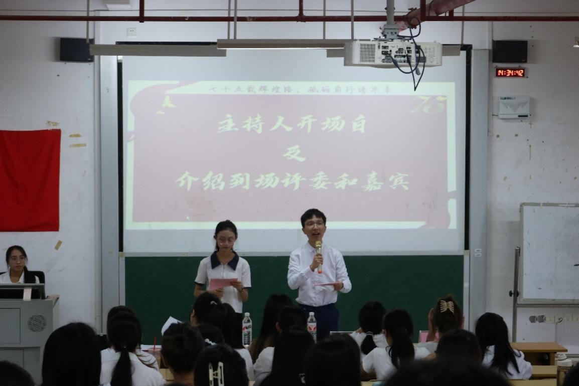 11月17日下午,文学院在文科综合楼401教室举办了以“七十五载辉煌路,砥砺前行谱华章”为主题的演讲比赛决赛。文学院兼职辅导员莫碧英、梁佩宜,学生会常委刘莹、田胜男出席本次比赛并担任评委。