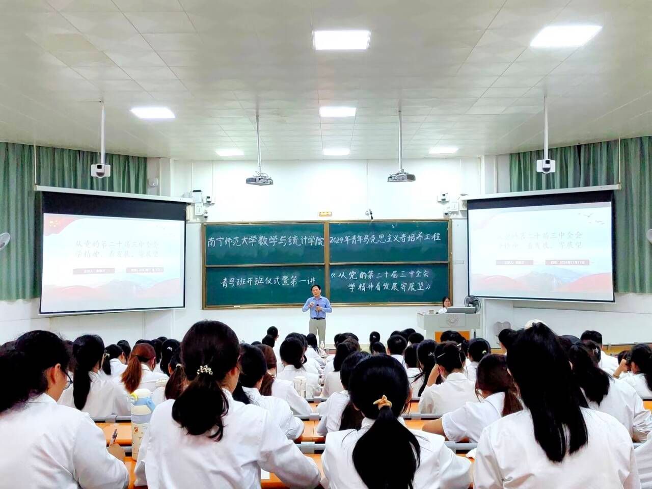 为培养坚定的青年马克思主义者、提高青年学子的思想政治素养,11月11日——12月13日期间,数学与统计学院开展了2024年“青年马克思主义者培养工程”培训班。学院党委书记余敢才、副书记付进以及团委书记、辅导员老师和146名学员参加此次活动。