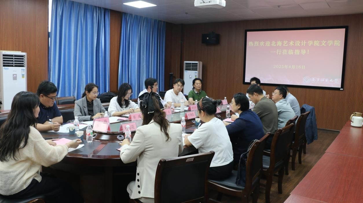 2025年4月16日下午,北海艺术设计学院文学院院长黄宇鸿、院党支部书记岳莹、副院长裴景旺、副院长蔡森、汉语言文学教研室主任姜玮、汉语国际教育教研室副主任李雪、陈敢教授等一行7人到完美(中国)官方在线登录文学院进行座谈交流。文学院院长石勇、党委书记旷晓霞、专家代表林安宁,及各教研室主任、学工行政人员代表等热情接待了黄宇鸿院长一行。