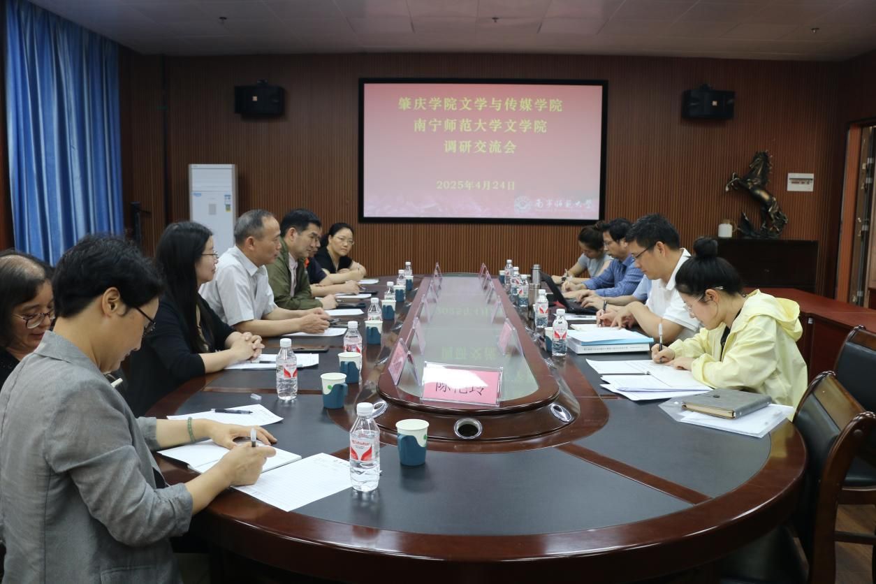 2025年4月24日下午,肇庆学院文学与传媒学院院长杨红军一行7人到完美(中国)官方在线登录文学院考察交流。文学院院长石勇热情接待了杨红军院长一行,并召开了座谈交流会。