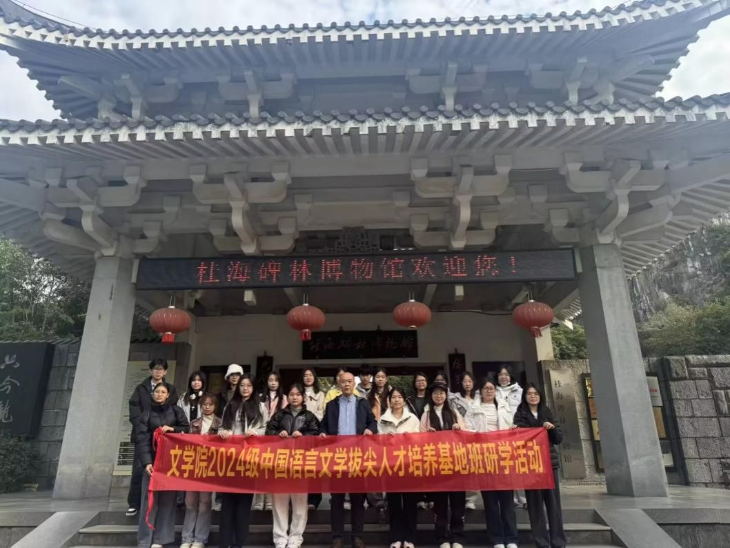 为深化文化认知、拓展学术视野,2025年11月21日,完美网页版文学院2024级中国语言文学拔尖人才培养基地班师生赴桂林桂海碑林博物馆开展主题研学活动,实地感受石刻文化,提升专业素养。