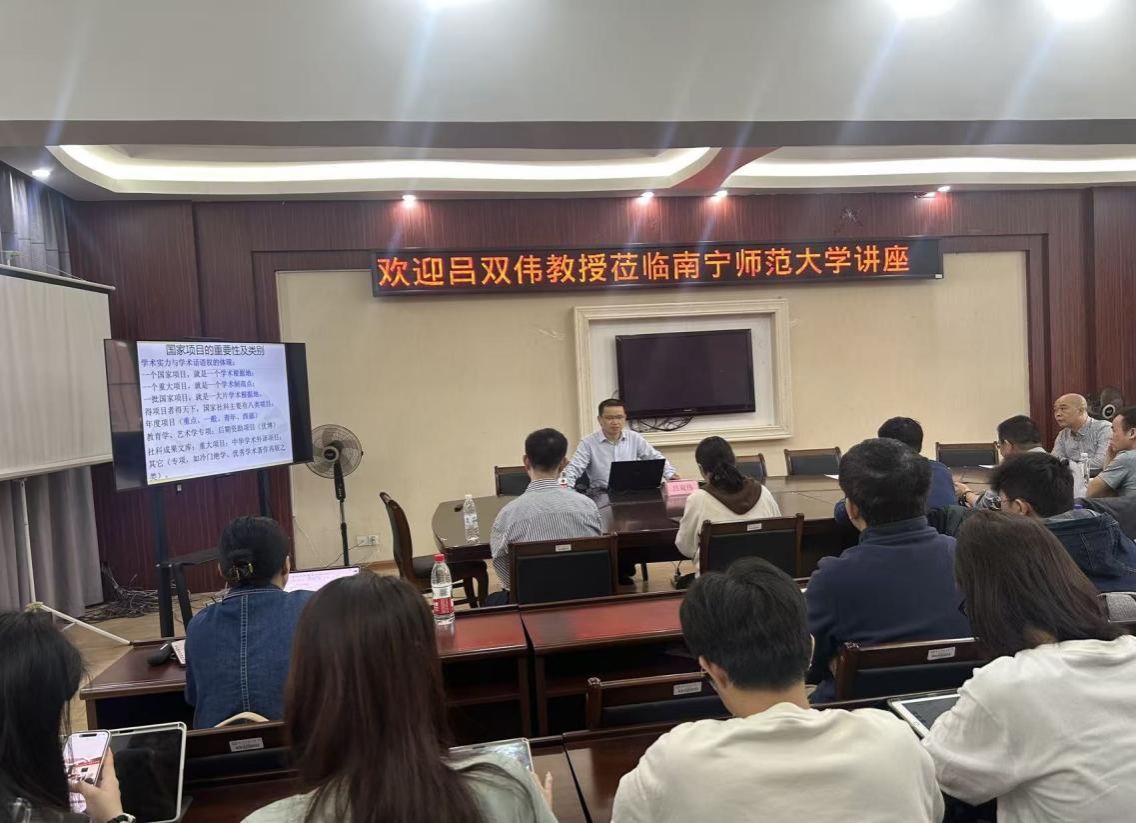 11月16日上午,在完美网页版明秀校区外语楼310会议室举行了“知行·文心”大讲坛社科名家报告会。湖南师范大学文学院教授、博士生导师吕双伟应邀作题为“漫谈国家社科基金申报”的专题讲座。讲座由文学院副院长(主持行政工作)刘振平主持,文学院、国际教育学院教师及研究生50余人参会。