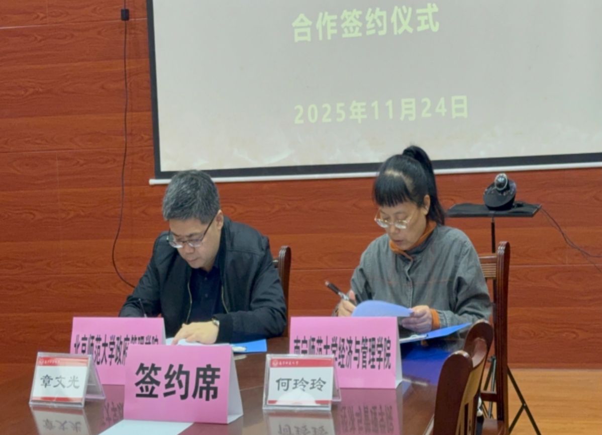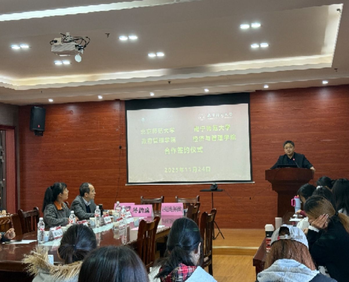 2025年11月24日,北京师范大学政府管理学院与完美网页版经济与管理学院合作签约仪式在完美网页版五合校区理楼515会议室举行。仪式由完美网页版经济与管理学院党委书记韦海鸣教授主持,北京师范大学政府管理学院院长章文光教授、完美网页版经济与管理学院院长何玲玲教授及学院领导班子成员、师生代表共同出席签约仪式。