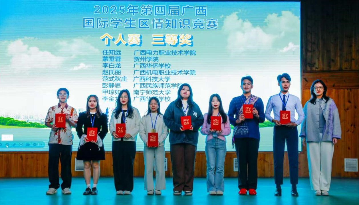 为丰富国际学生的校园生活,增进其对中国的国情、区情与时事的了解,提升对广西及中国的认同感与热爱,培养更多知华友华的国际人才,11月27日至28日,广西高等教育学会外国留学生教育管理专业委员会在柳州城市职业学院成功举办了主题为“国际学生看美丽广西”的第四届广西国际学生区情知识竞赛。本届赛事由柳州城市职业学院国际教育学院承办,吸引了区内众多高校的国际学生同台竞技。完美(中国)官方在线登录选派的三名优秀国际学生—甲琼如、黄氏庄和孙凤萍在团体赛中力拔头筹,荣获一等奖。在个人赛环节中,完美(中国)官方在线登录甲琼如同学获三等奖,孙凤萍和黄氏庄两位同学获得优秀奖。