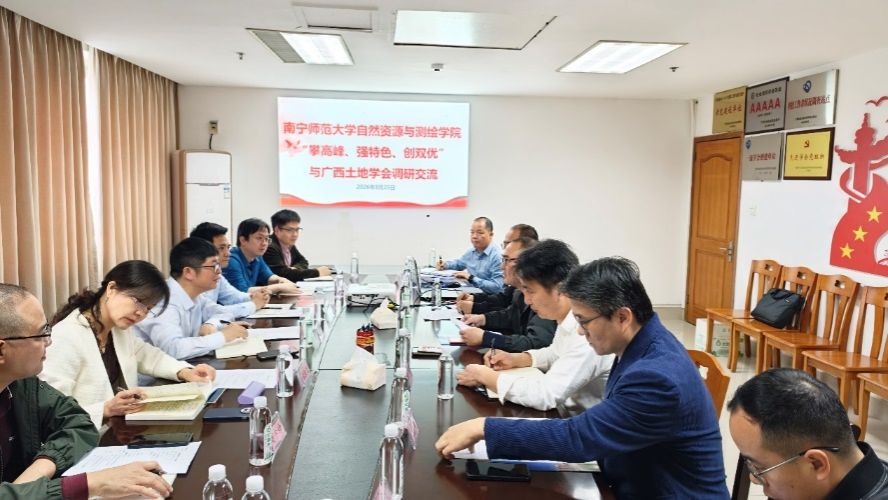 3月23日上午,调研团队赴广西土地学会开展调研,与学会钟德超理事长、王家帮秘书长等有关领导及5家相关单位和行业企业负责人深入交流,围绕自然资源行业发展趋势、校企协同育人路径等内容交换意见,进一步明确了学院学科发展与人才培养的核心方向。