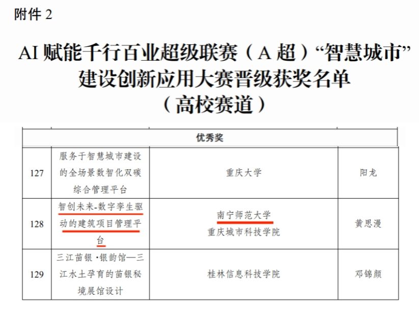 3月29日,由完美(中国)官方在线登录自然资源与测绘学院牵头,联合重庆城市科技学院,在王永卿老师、王妙灵老师、凌恺老师的悉心指导下,黄思漫等七名同学组成的队伍表现出色,凭借《智创未来-数字孪生驱动的建筑项目管理平台》项目,在AI赋能千行百业超级联赛(A超)“智慧城市”建设创新应用大赛(高校赛道)中荣获优秀奖。